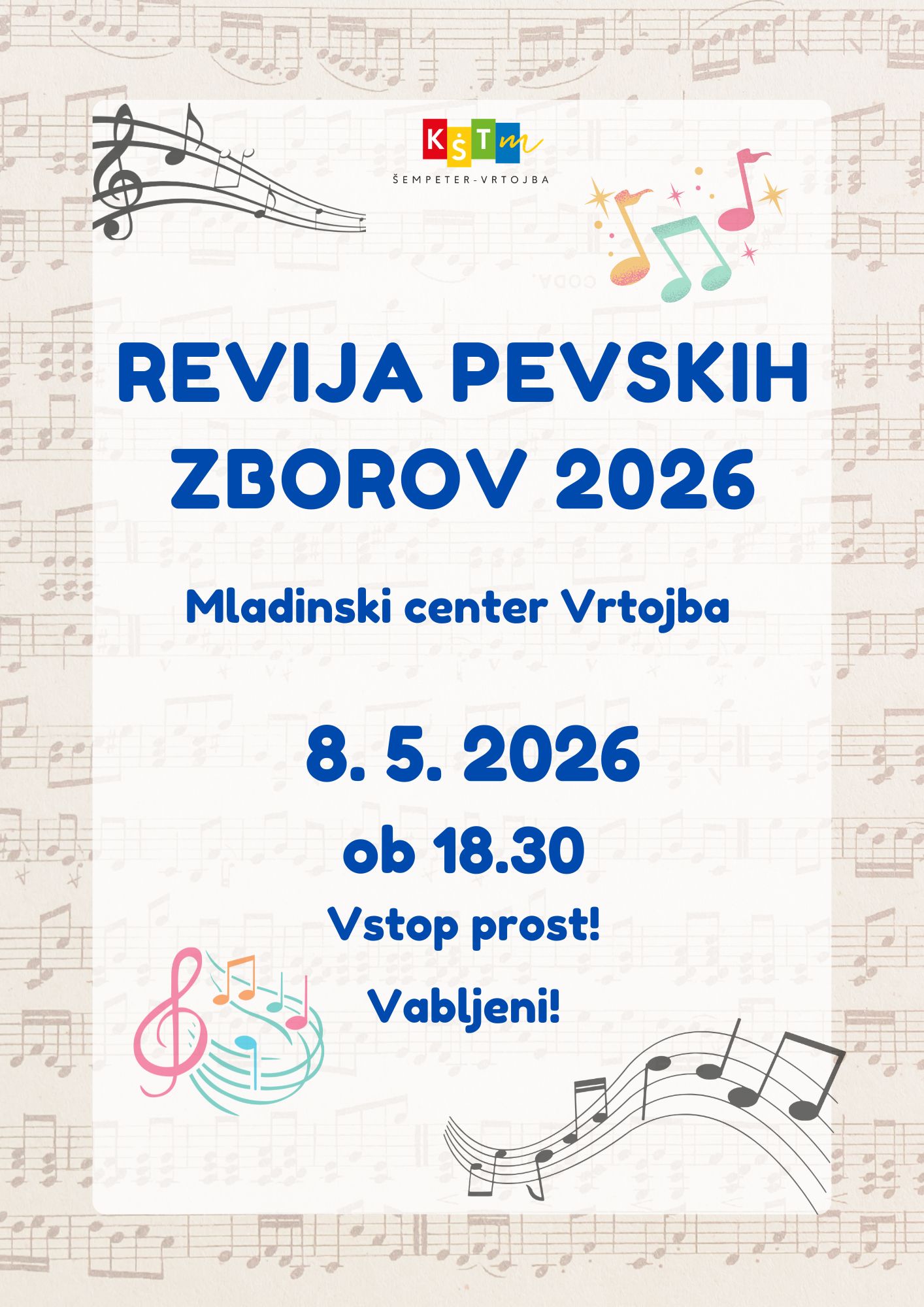v petek 8. 5. 2026 ob 18.30 uri bo v Mladinskem centru v Vrtojbi potekala tradiconalna revija pevskih zborov S PESMIJO V POMLAD.