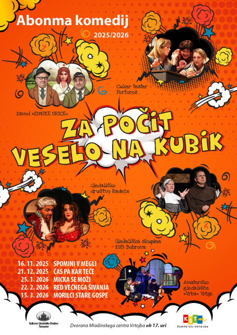 Tudi letos bo potekal abonma komedij ZA POČIT VESELO NA KUBIK.
